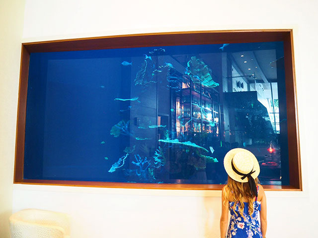魚が優雅に泳ぐ巨大な水槽を眺めながら、