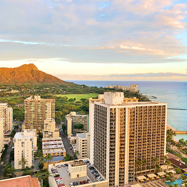 客室からはダイヤモンドヘッドと海の両方を一望でき、