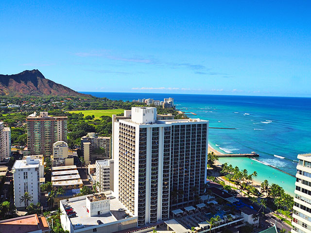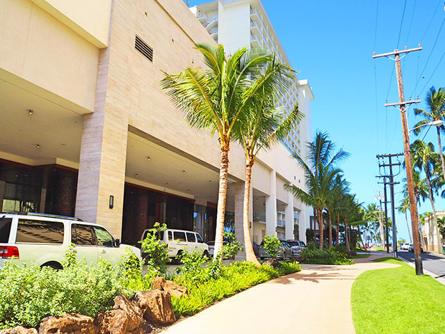 カラカウア通り沿いにあるオーシャンフロントホテル。