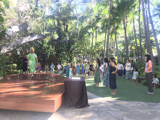 あちこちでレッスンは受けられるけど、Royal Hawaiian Center では定期的に無料のフラレッスンを中央のステージ広場で開催されています。
