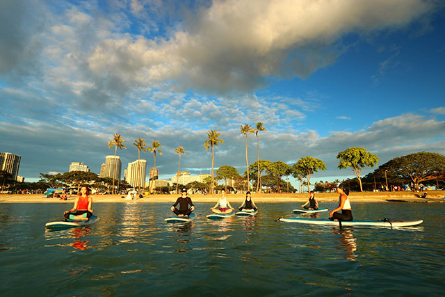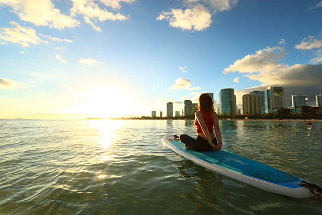 サンセットを眺めながら話題のSUP YOGAに挑戦!
