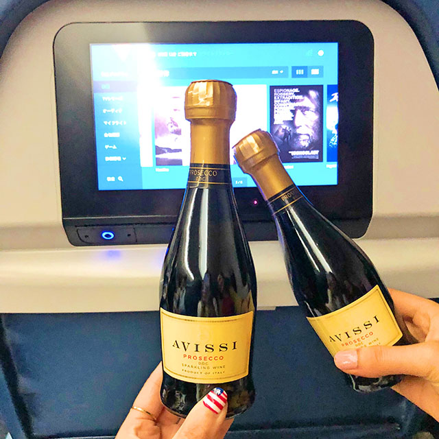 機内でスパークリングワインが飲めるなんて嬉しい限りです。