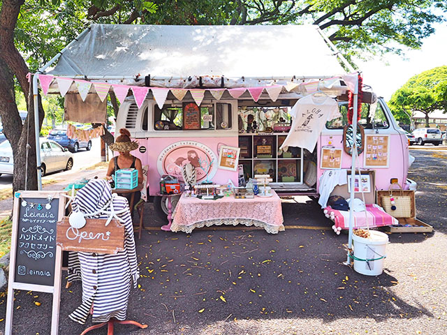 カイルアにある可愛いピンクのワーゲンバスが一際目立つジュエリーショップLeinaia。