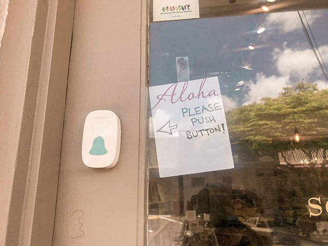 -入る時はこのドアベルを鳴らすと2階からオーナーさんが降りてきて開けてくれます-