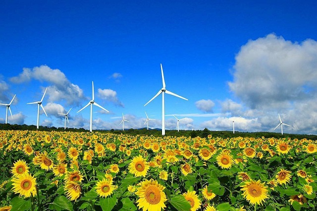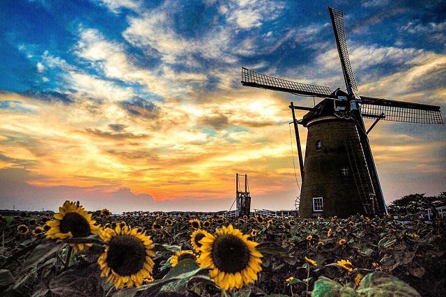 写真提供:@m15tさん【投稿コメント(抜粋)】#青空 ×#向日葵×#風車