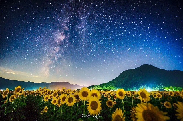 写真提供:@na274fuさん【投稿コメント(抜粋)】午前1時、ひまわり畑で(2018/07/21)