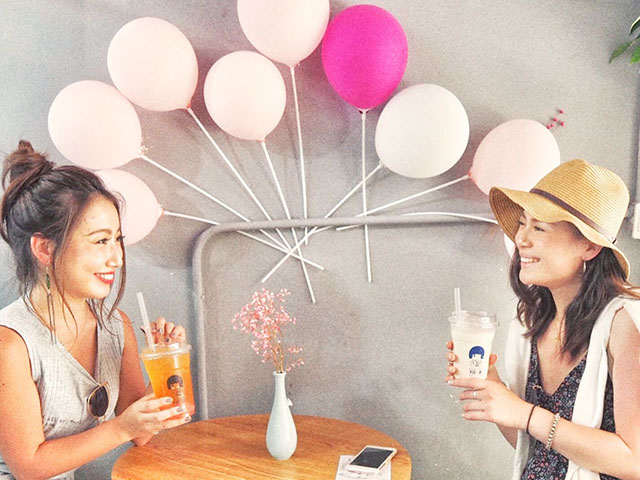 可愛いタピオカ屋さんを見つけたのでそこでひと休憩。