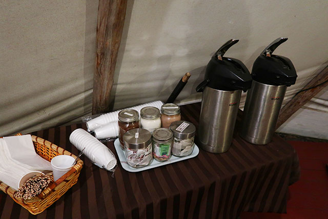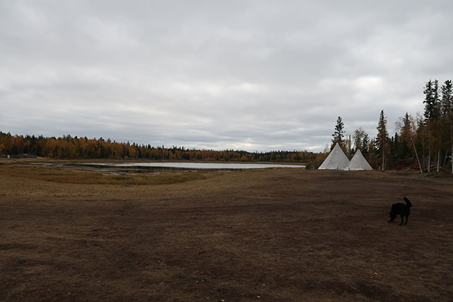 ティーピーと呼ばれる先住民の住居を模したテントの中で待つことになります。