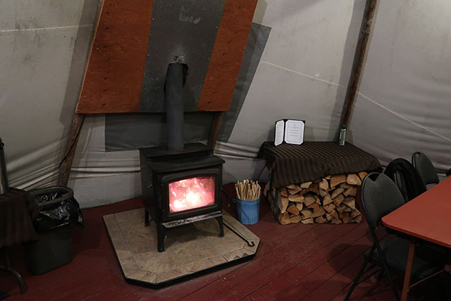 ティーピーの中では、薪ストーブが焚かれ、暖を取ることが出来ます。