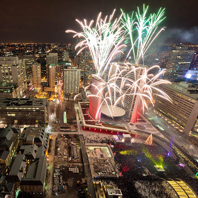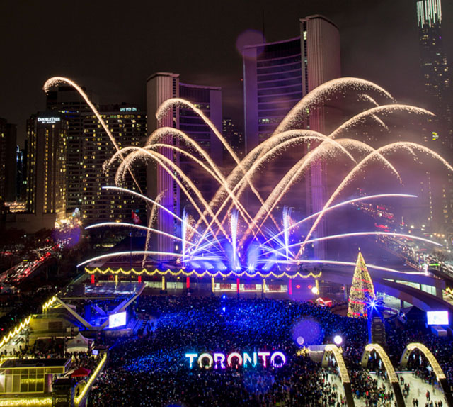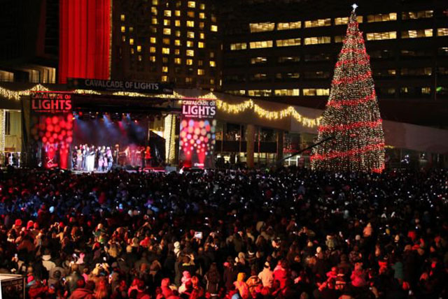 トロント市庁舎前の巨大なクリスマスツリー点灯式!さらにはアーティストによるコンサートや、花火が楽しめる!そしてなんと、フリーイベントです!!