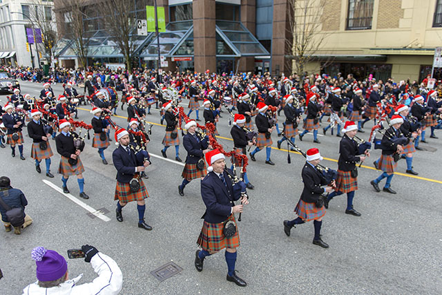 観客はなんと30万人越えにもなる大型のパレード!バンクーバーのダウンタウンに、マーチングバンド、サンタクロースのにぎやかなパレードが現れ、大盛り上がりです!