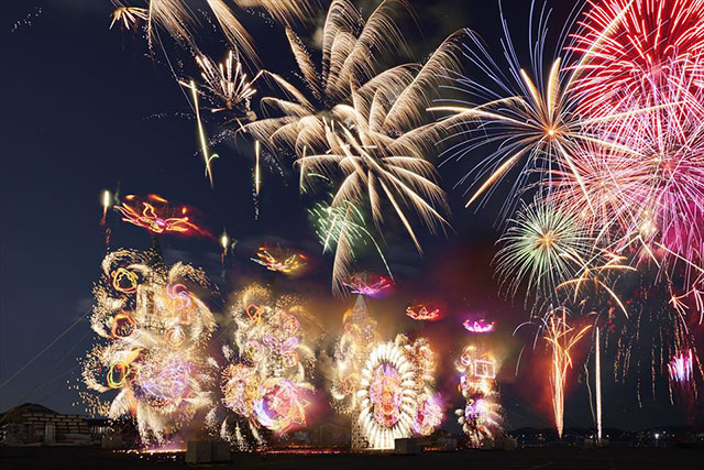 その他にも世界各国の民族音楽や流行の音楽など、海と陸を舞台にした劇場型花火はクライマックスまで一瞬も見逃せない。