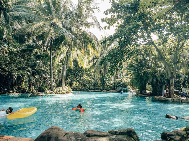 別の場所には緑に囲まれたガーデンプールも。こちらは親子連れで楽しむ姿が目立ちました。