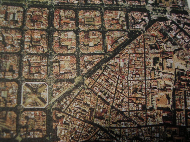 新市街は上空から見るととても美しく、113mの正方形の角がきっちり15メートル切り取られた八角形が並んでいます。