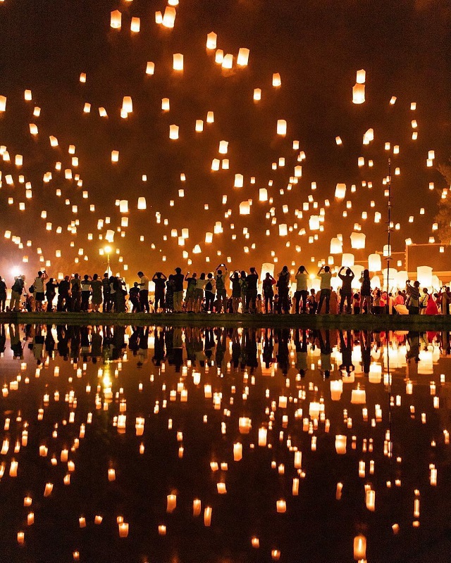ロイクラトン祭りとは農業の収穫に感謝し、水の女神に祈りを捧げ、空へ灯篭を一斉に打ち上げるお祭りの事。チェンマイでは特にイーペン祭りということもあります。たくさんのコムローイが一斉にチェンマイの夜空に舞いあがる様子は、まるで映画の世界にいるかのような錯覚に陥るほど幻想的で神秘的です。