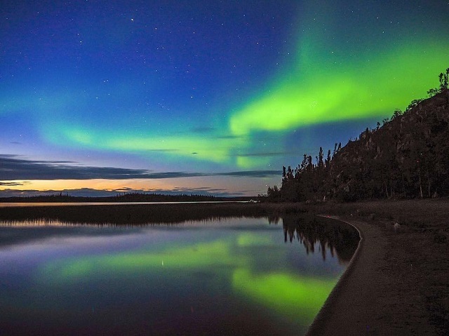 オーロラは冬の極寒の中、見るイメージがあるけどイエローナイフでは夏に15℃くらいの気温の中で見ることができるのでかなりおすすめ.