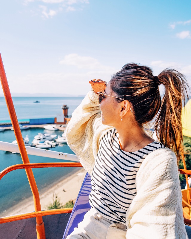 観覧車が一番上まで上がると、オーシャンビューとシティービューを楽しめます♡