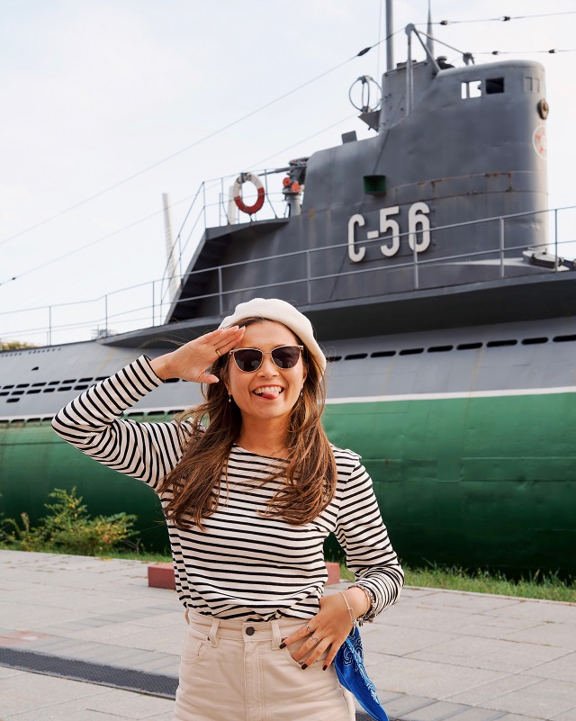 前回訪れた際に、「潜水艦があるなら、マリンルックを用意すれば良かった〜!」と、悔いが残ったのですが、見事にリベンジを果たせました。笑