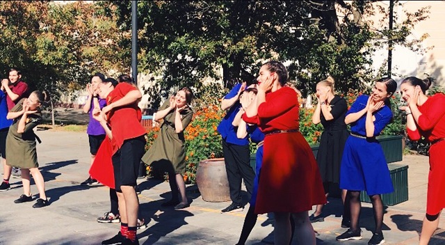 爆音の音楽と共に大勢のスタッフ達が出てきて、準備運動がてらのパフォーマンスをみせてくれます。笑