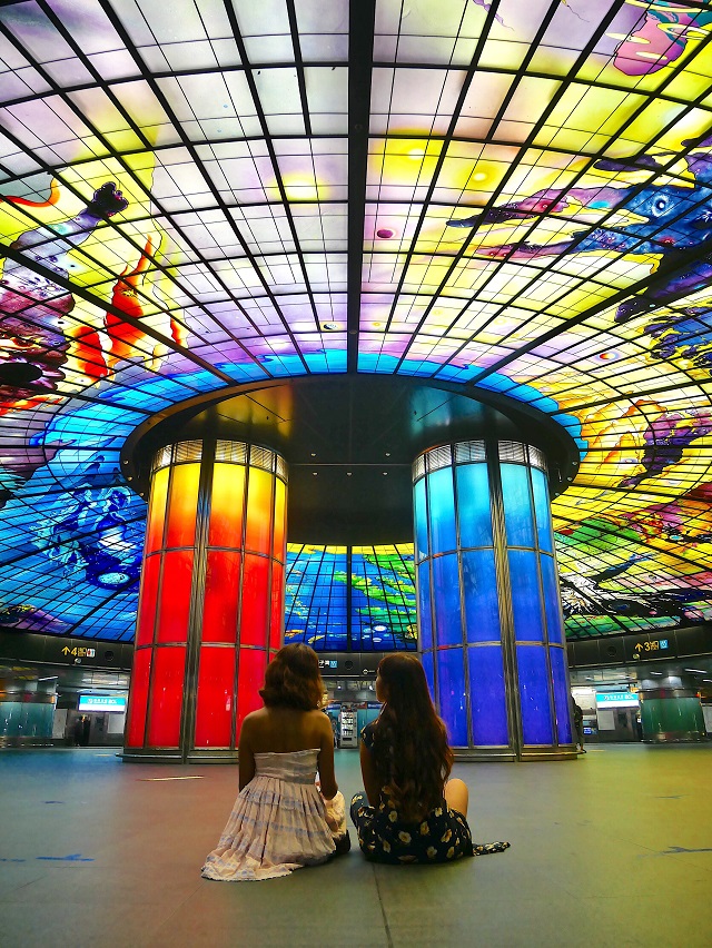 美麗島站の駅内はカラフルなライトアップがされており、大迫力なので写真を撮るのにおすすめ。