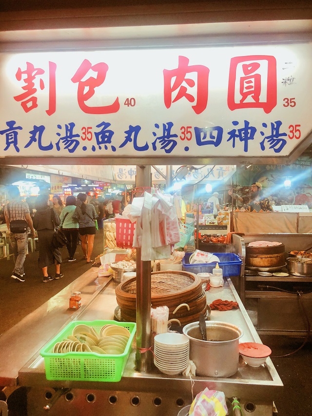 屋台料理では、肉まんのような見た目で蒸し器に入っているもの食べました。こちらは台湾の有名B級グルメ、肉圓(バーワン)と言い、サツマイモ粉や片栗粉などから作られた皮で、豚肉・しいたけ・筍などで作った餡を包んだものです。