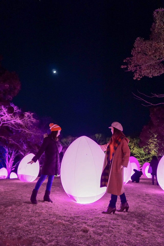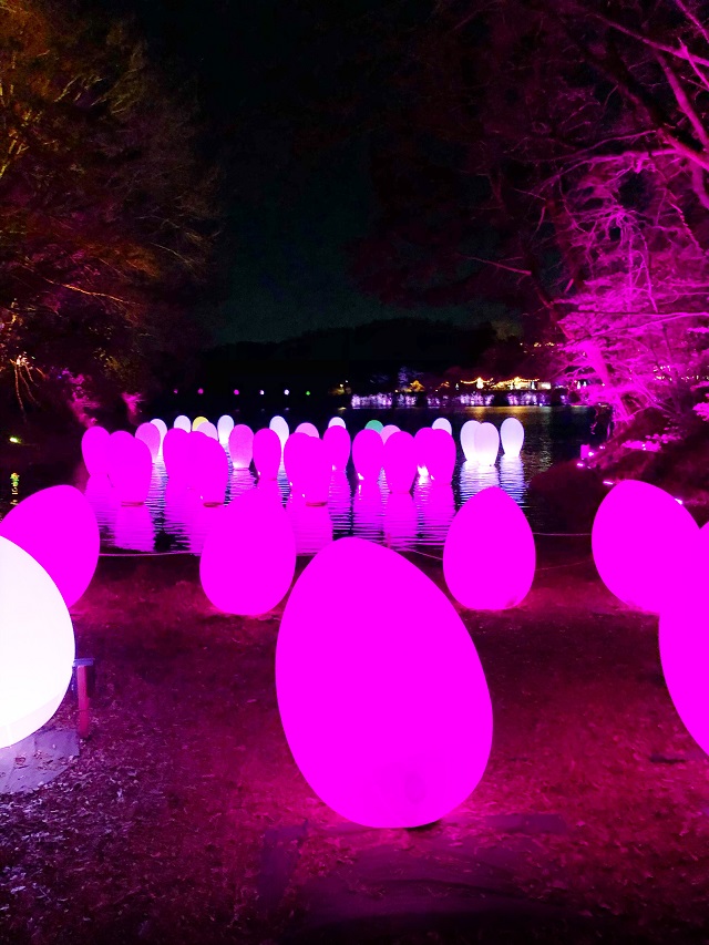 メッツァビレッジで開催中の「チームラボ森と湖と光の祭」では宮沢湖を囲みアートプロジェクトが鑑賞出来ます。光のアートによって人々を幻想的な世界に引き込んでくれました!