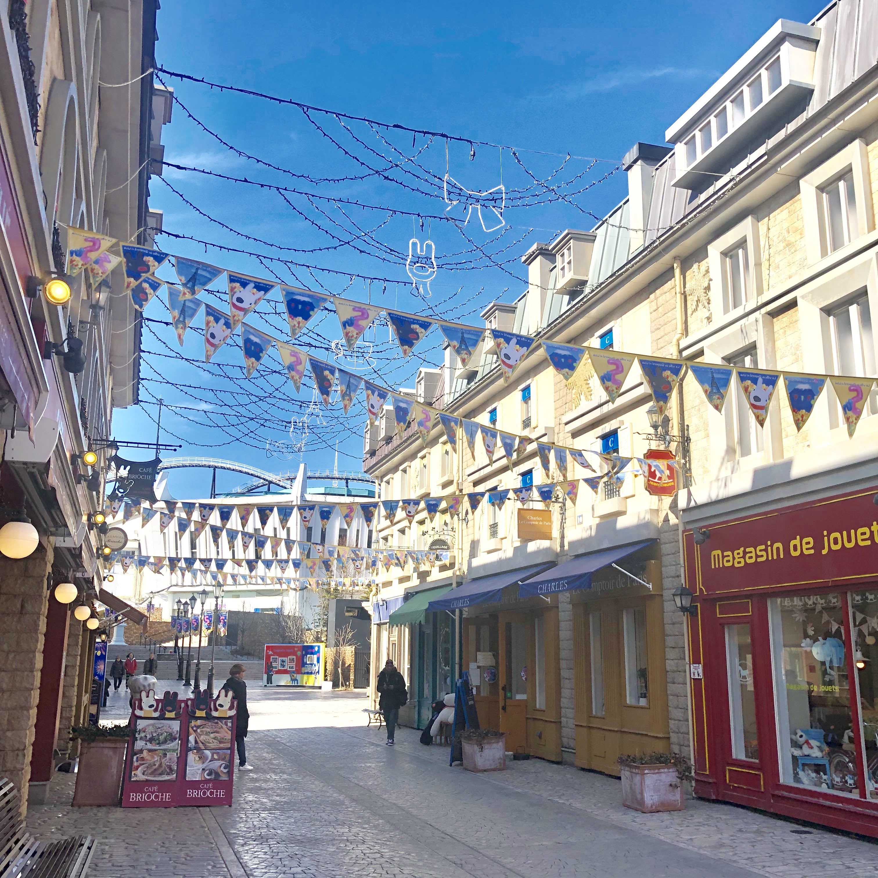 エッフェル塔をはじめフランスの街中にいるようなカフェやショップが並びとても可愛いテーマパークでした。CAFE BRIOCHIは店内でパン職人が作る焼きたてのパンが食べられたり、リサとガスパールのショップではここにしかないグッズをお土産にすることも出来ます。様々なお店を一つ一つ楽しむことができ、カップルでもファミリーでも大満足できる場所です!