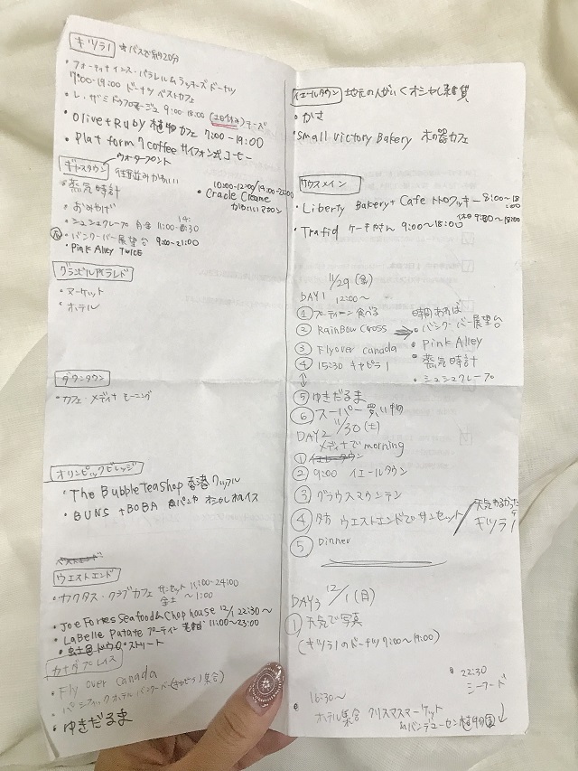 場所・営業時間なども事前に調べ、Google MAPでピンをさして計画しています。