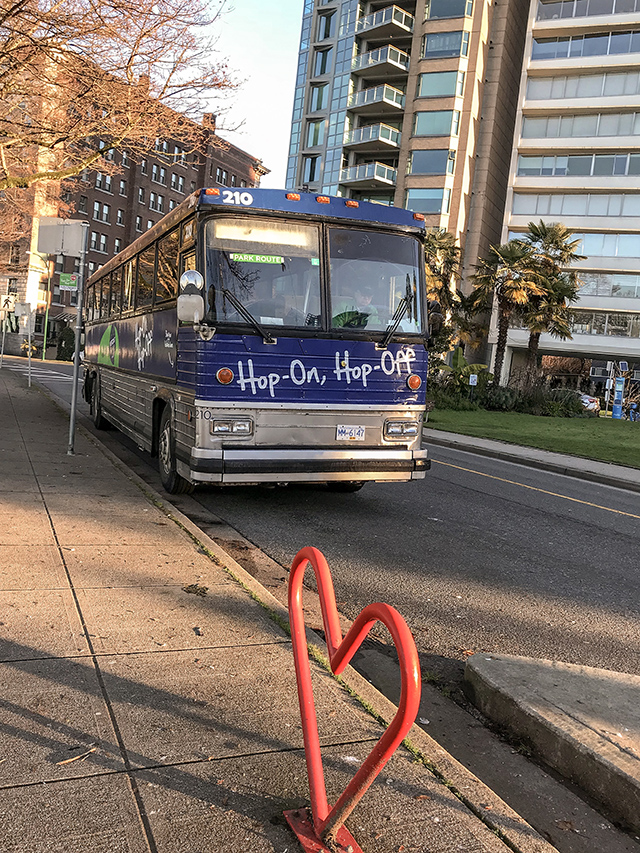 行き方:5番バスで「Southbound Denman St @ Robson St」まで。
