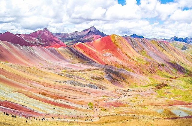 名前の通りの虹色の山「レインボーマウンテン」(正式名称:Montaña Vinicunca、ヴィニクンカ山)。レインボーマウンテンの登山口はなんと富士山より標高の高い4,380メートル。「2018年アメリカ大陸記憶に刻まれる風景30選」にも選出され、自然が造った奇跡の絶景として注目を集めています。