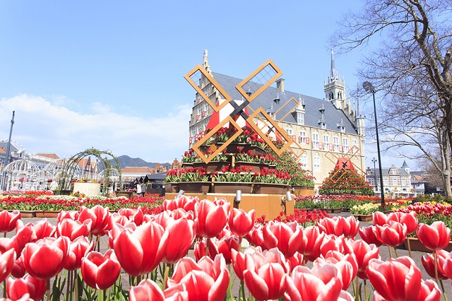 ヨーロッパの街並みに日本最多700品種のチューリップが咲き誇る「100万本の大チューリップ祭」