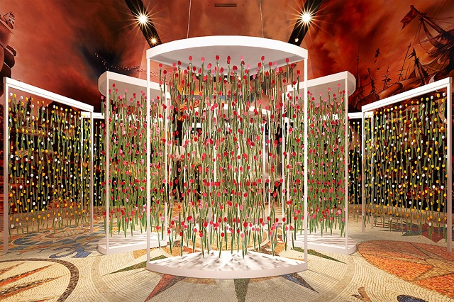 パレス ハウステンボスでは、チューリップに包まれたフラワーアートが登場!