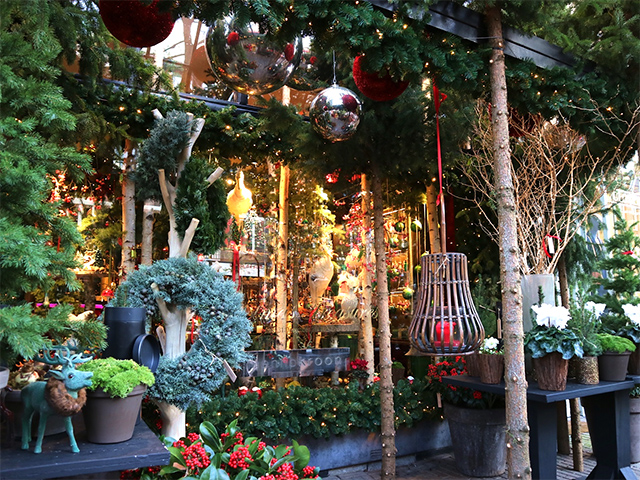 アムステルダムといえば- シンゲルの花市場 –も有名ですが、街を歩いていると可愛らしいフラワーショップがありました。お店の外からクリスマスモード満載!