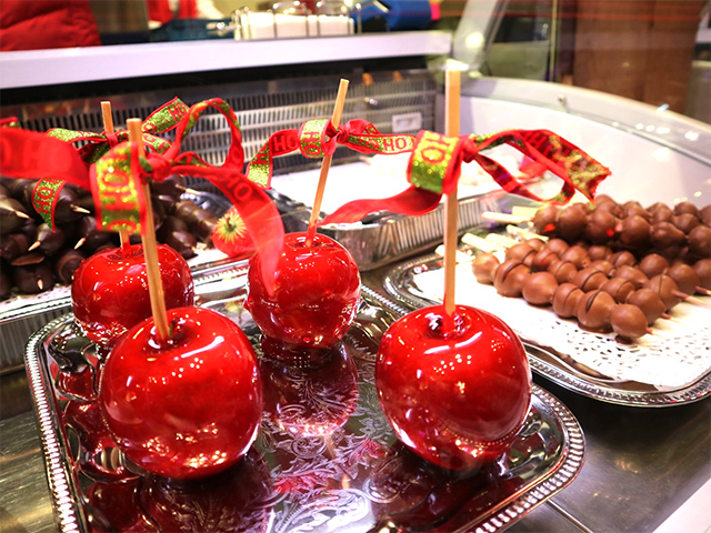 《美味しいもの》をたくさん食べて幸せなひと時。広場内にはレストラン・カフェもあります。街の中でこの一角はクリスマスらしく -童心- に帰れる場所です!