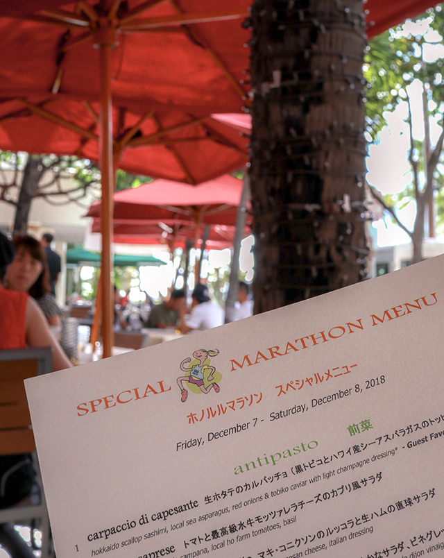 お昼過ぎまでお買い物や観光を楽しんだあと、早めにワイキキに戻ってきてアランチーノでカーボローディング。
