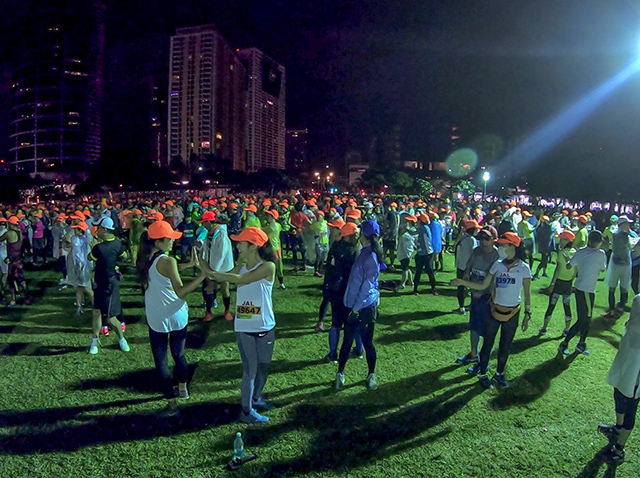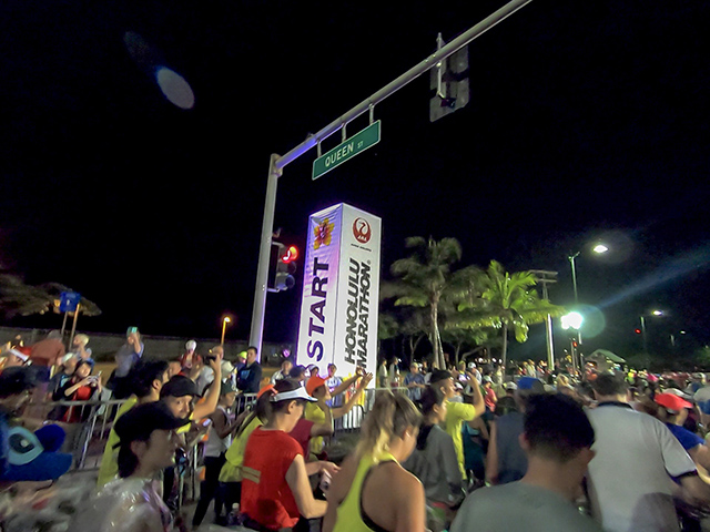 最初は流れに乗っていいペースで走っているものの、ダウンタウンで折り返すと見えてくるのはHonolulu City Lights。