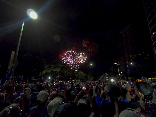 世界各国から集まった3万人以上の参加者達とスタートの花火に興奮しながら真っ暗の中スタート。花火も近くで打ち上げているのでかなり迫力があります。