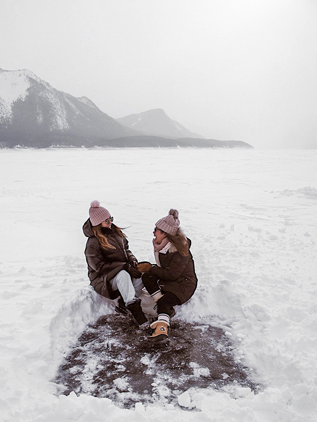 雪が積もっているアブラハム湖はどこまでも続く銀世界で感無量でした。この時期は観光客が少なく、この日は私たちしかいなかったので写真も撮り放題!
