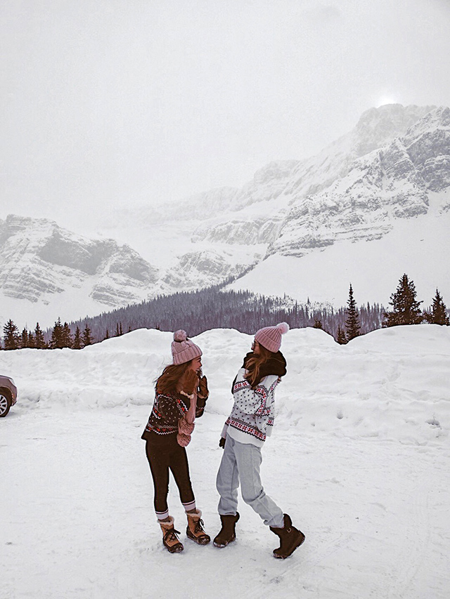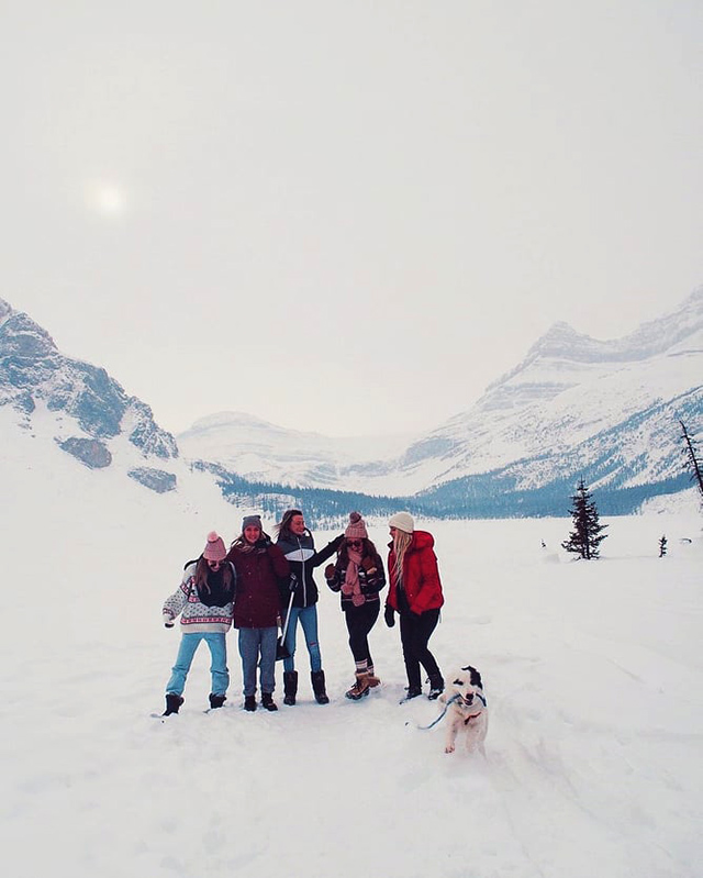服装指数:体感温度-50℃!!!ついに来ましたこの寒さ!(笑)車を降りた瞬間に寒い!とびっくりしました。バンフの街では-20℃でも、ある程度着込んでおけば全然平気だったので、謎に余裕をこいて(寒がりのくせに)あまり変わらない格好で行ってしまい、後悔するはめに(笑)。。とにかく風が冷たいので、極力肌を出さないようにするのが賢明です。私は薄いニット帽のせいで耳が本当に痛くて痛くて。おすすめの服装は、耳まで隠れる分厚いニット帽や耳当て、口元までグルグル巻けるマフラー。フードの付いたロングダウンコート。ヒートテックなどは何枚着てもいいと思います。靴下は二枚重ね履きををしてスノーブーツを履いておけば大丈夫です。眩しいのでサングラスもあるといいです。問題は手袋。手袋だけはスキー用などの防寒機能がしっかりしたものをおすすめします。私はシティー用の革の手袋をしていき、これは本当に後悔しました(笑)