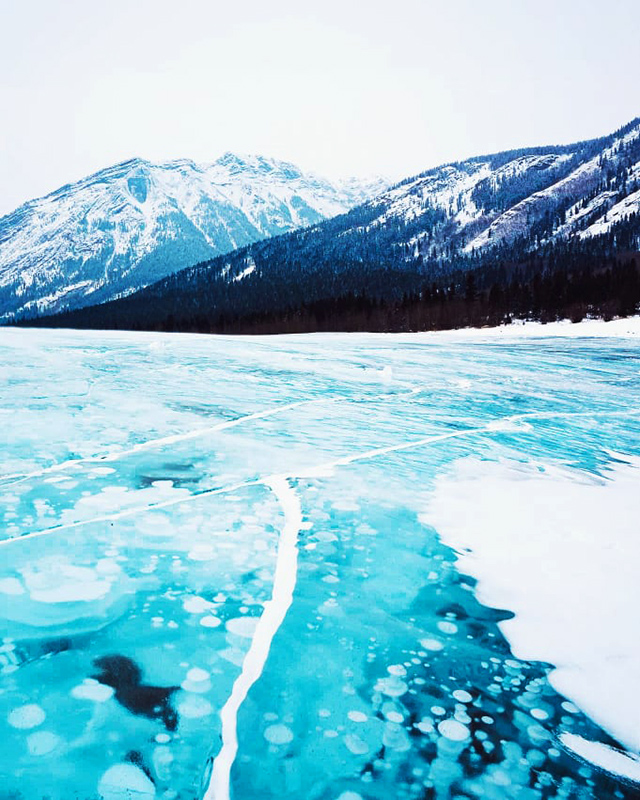 自然の奇跡を体感できて、一度は見たかったアイスバブルを見ることができて、寒がりの私でも大満足のアブラハム湖でした♡