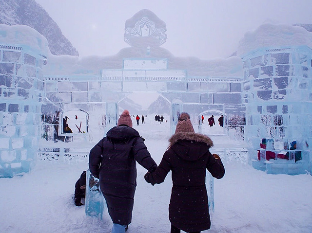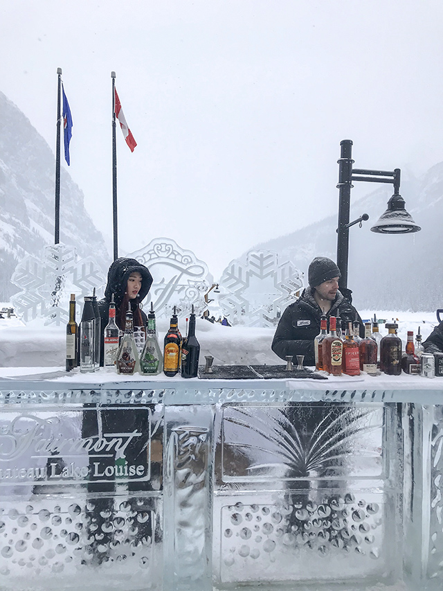 私たちはレイクルイーズ前にあるホテル「フェアモントシャトーレイクルイーズ」が展示する“アイスマジック”と呼ばれる氷の彫刻を見たり、約-20度の中で楽しめる野外BARを楽しんだりしました!絶景を眺めながらアイス・バーでお酒が飲めるなんて贅沢ですよね!