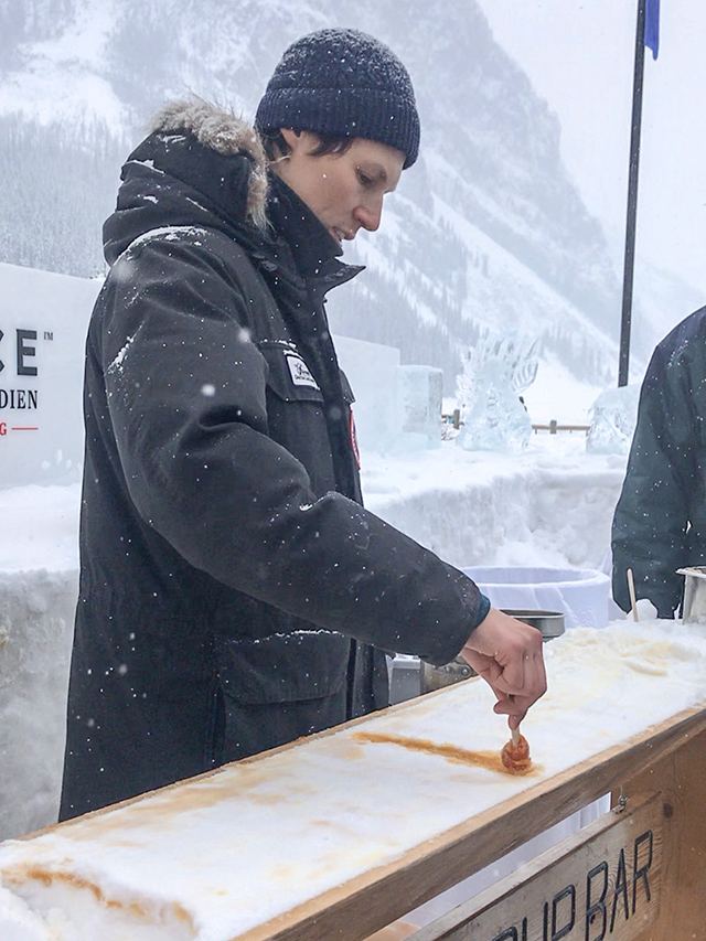 そこではメイプルシロップを雪の上にたらして作るメープルシロップキャンディーが売られていました。これは冬のカナダならではですね♡