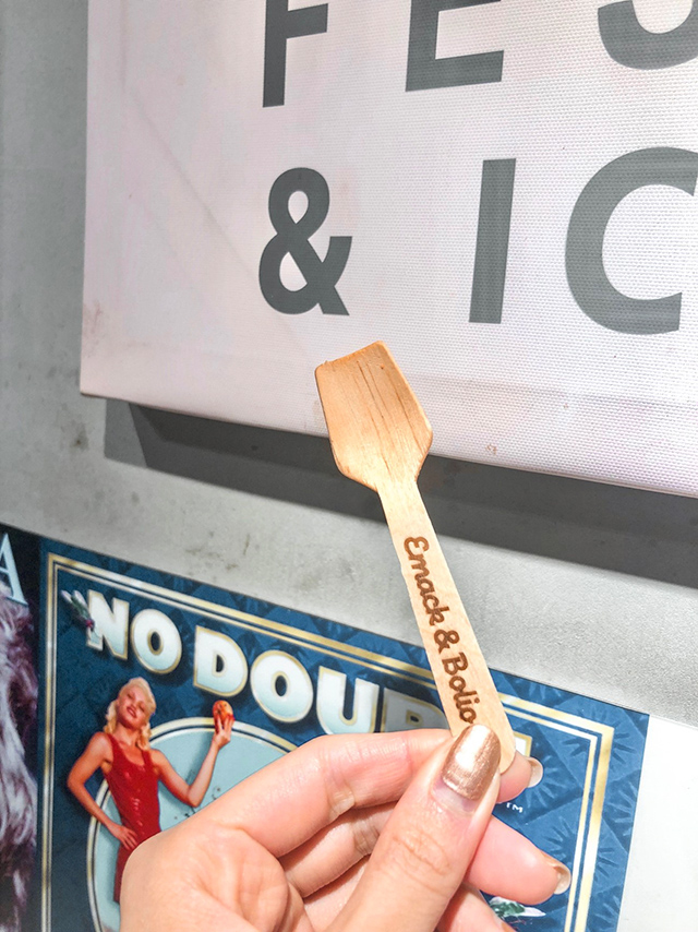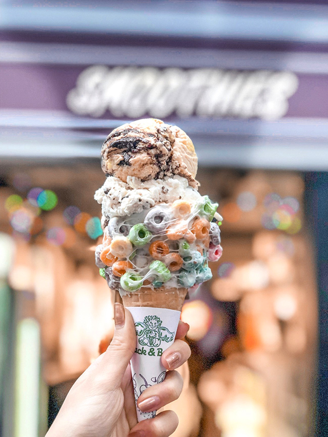 そして、アイスクリームが人気の【Emack & Bolio’s】へ。コーティングが選べるコーンとアイスをチョイス。ダブルのボニュームはなかなかです!(笑)