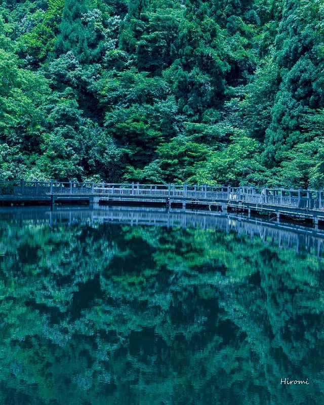 津町の酒波集落を抜けて「ビラデスト今津」へと続く林道の入り口に広がるります。その名の通り秋になると、池面に周辺の山々の紅葉が見事に映し出されます。初夏も新緑のリフレクションを楽しむことができます。