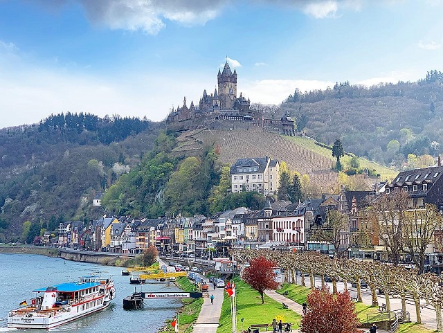 コッヘムの町のシンボル的存在にあるライヒスブルク城(コッヘム城)。一度11世紀に建築された後に復元をされています。コッヘムはワインの産地としても有名なため、多くの観光客が訪れます。