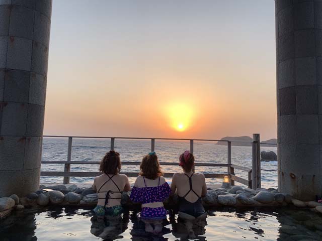 新島の中で夕日を眺めるスポットは他にもありますが、やっぱり温泉につかりながら見られる夕日は格別!