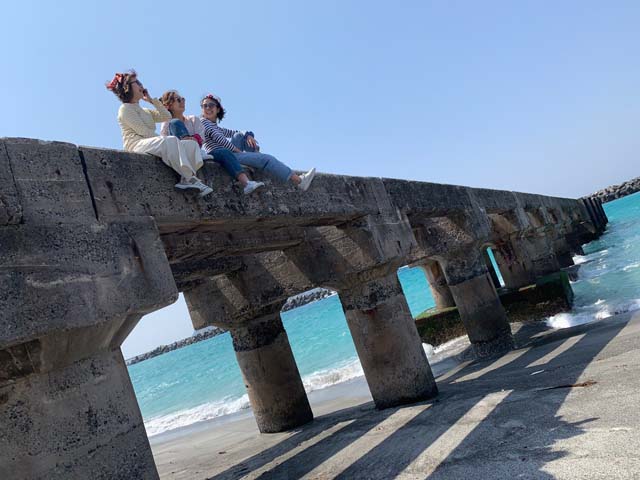 桟橋に腰かけながらゆっくりまったり、たわいもないおしゃべりをしながら、潮風と青い海に癒された前浜海岸でした♡