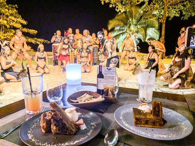癒されたところで、ディナーへ。『 マルケジアンダンスショー 』(毎週木曜日)ヒティマハナレストランにて。(要予約)