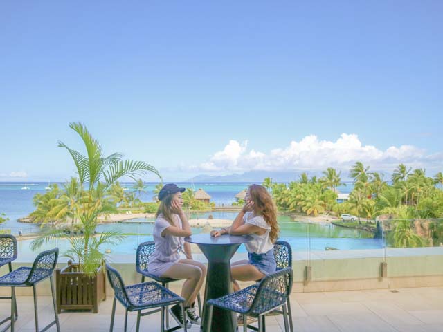 刻々と表情を変えるモーレア島の絶景を楽しめるよう、ロビーには24時間オープンのロビーバーが併設されていました。