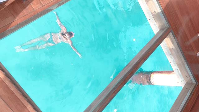 次の日の朝は部屋から天然プールへダイブ朝からひと泳ぎ。下を覗くと泳いでる風景はこんな感じです。きもちぃ〜!!